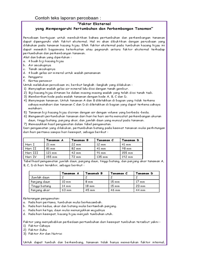 Biologi 12 Laporan Praktikum Pertumbuhan Dan Perkembangan Pada Tumb