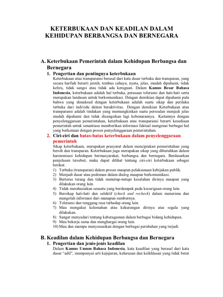 Keterbukaan Dan Keadilan Dalam Kehidupan Berbangsa Dan Bernegara Pustaka Belajar