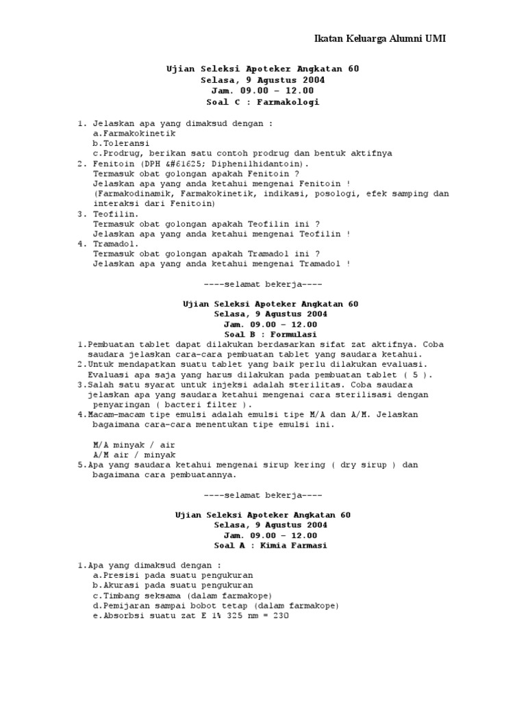Soal Ujian Profesi Apoteker Itb